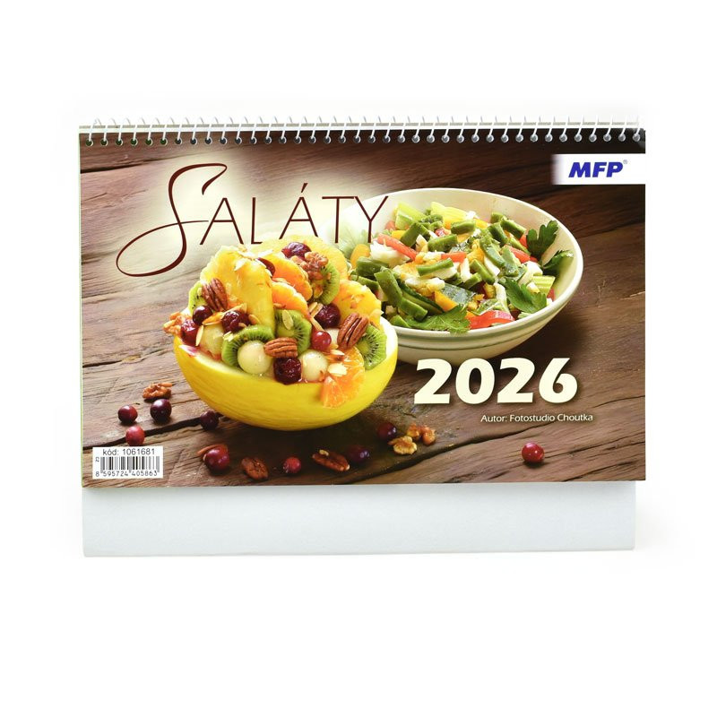 Praktický stolní kalendář na rok 2026 s motivem „Saláty“ vám pomůže s plánováním a zapisováním poznámek. Každý týden přináší fotografii a recept na chutný salát – včetně složení a postupu přípravy. Skvělá inspirace pro milovníky zdravé kuchyně.